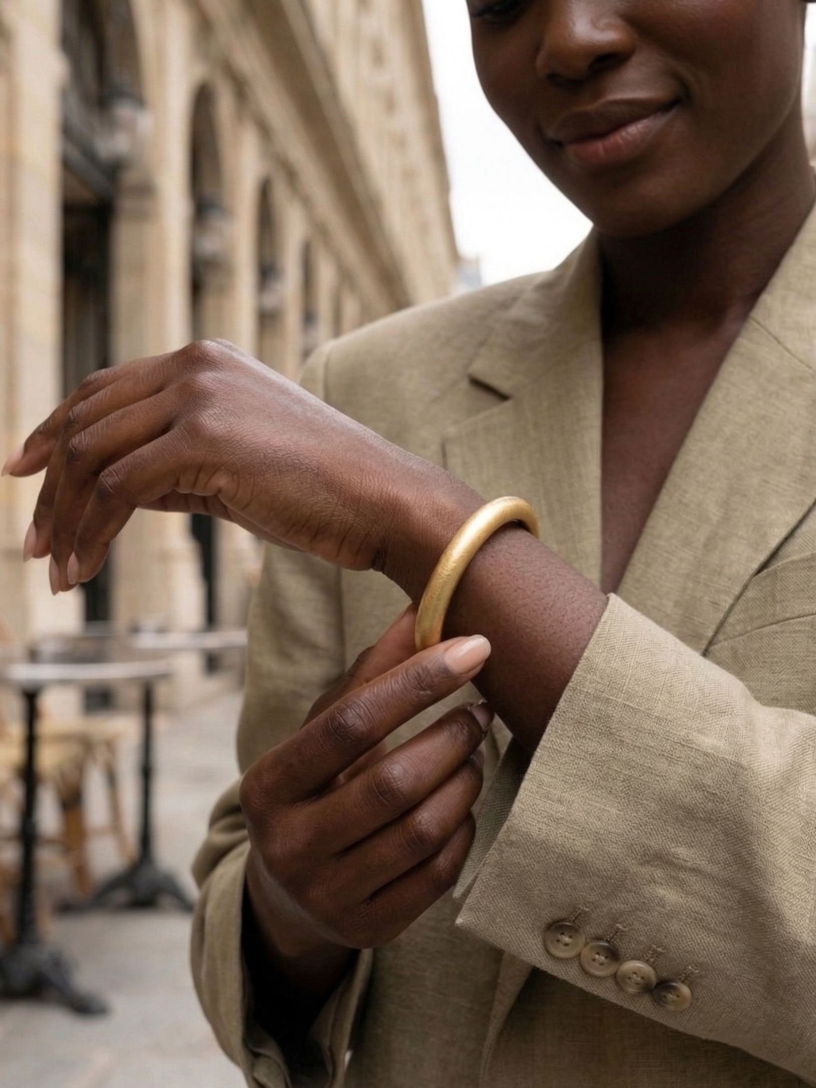 Si, comme moi, vous aimez les bijoux qui se font entendre, multipliez les joncs au poignet… et écoutez le kenlenleng des bracelets qui s’entrechoquent à chaque mouvement. 😉