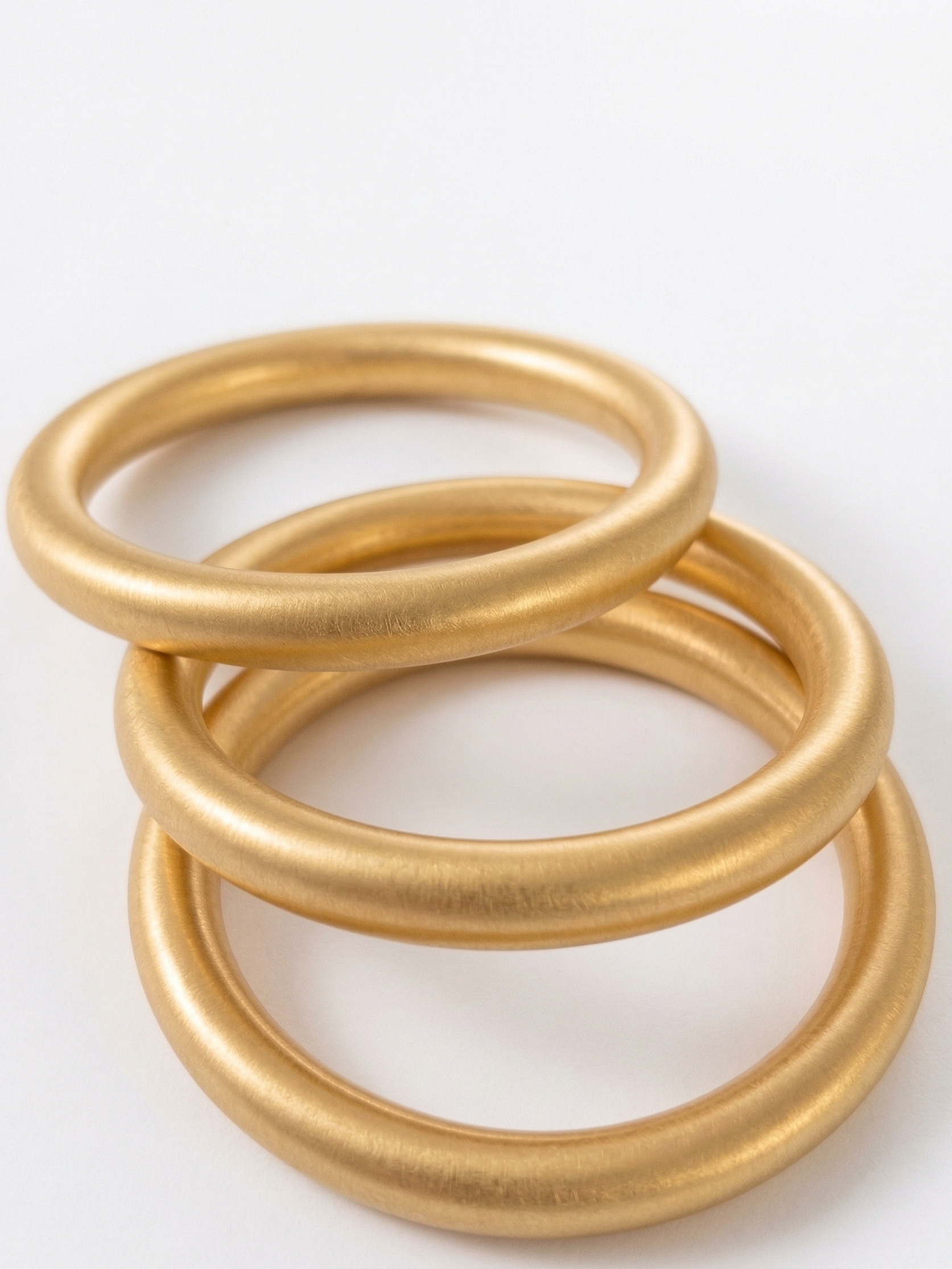 Un jonc en acier inoxydable finition or mat brossé, lumineux et intemporel.