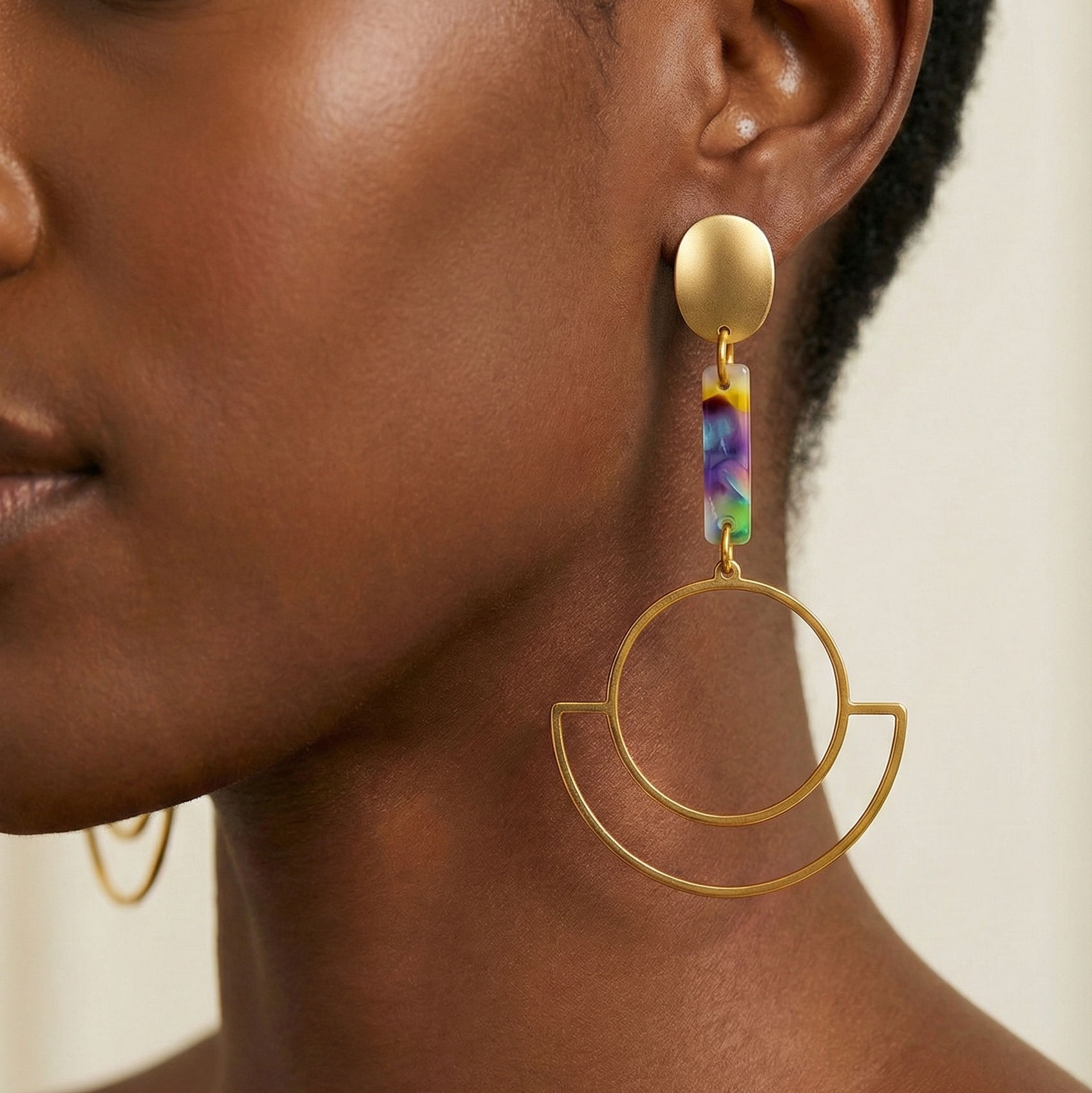 Mona célèbre la couleur et la géométrie avec une légèreté assumée. Deux variations, deux ambiances : l’une vibrante comme un éclat solaire, l’autre plus vaporeuse, teintée de nuances irisées.