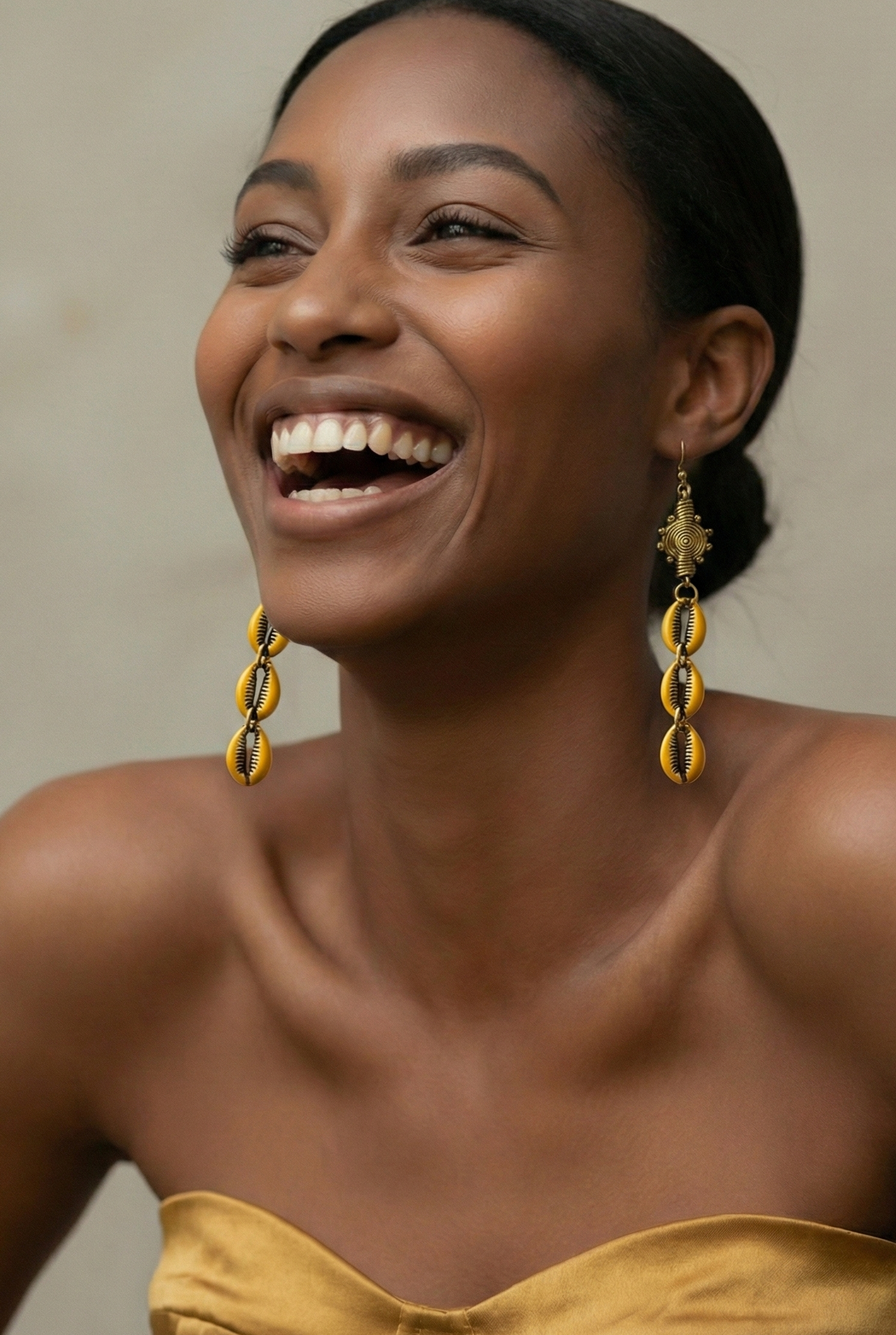 Les N’Kwélé, pièce unique, célèbrent la puissance symbolique du cauri, signe d’abondance, de chemin ouvert, de beauté qui circule.